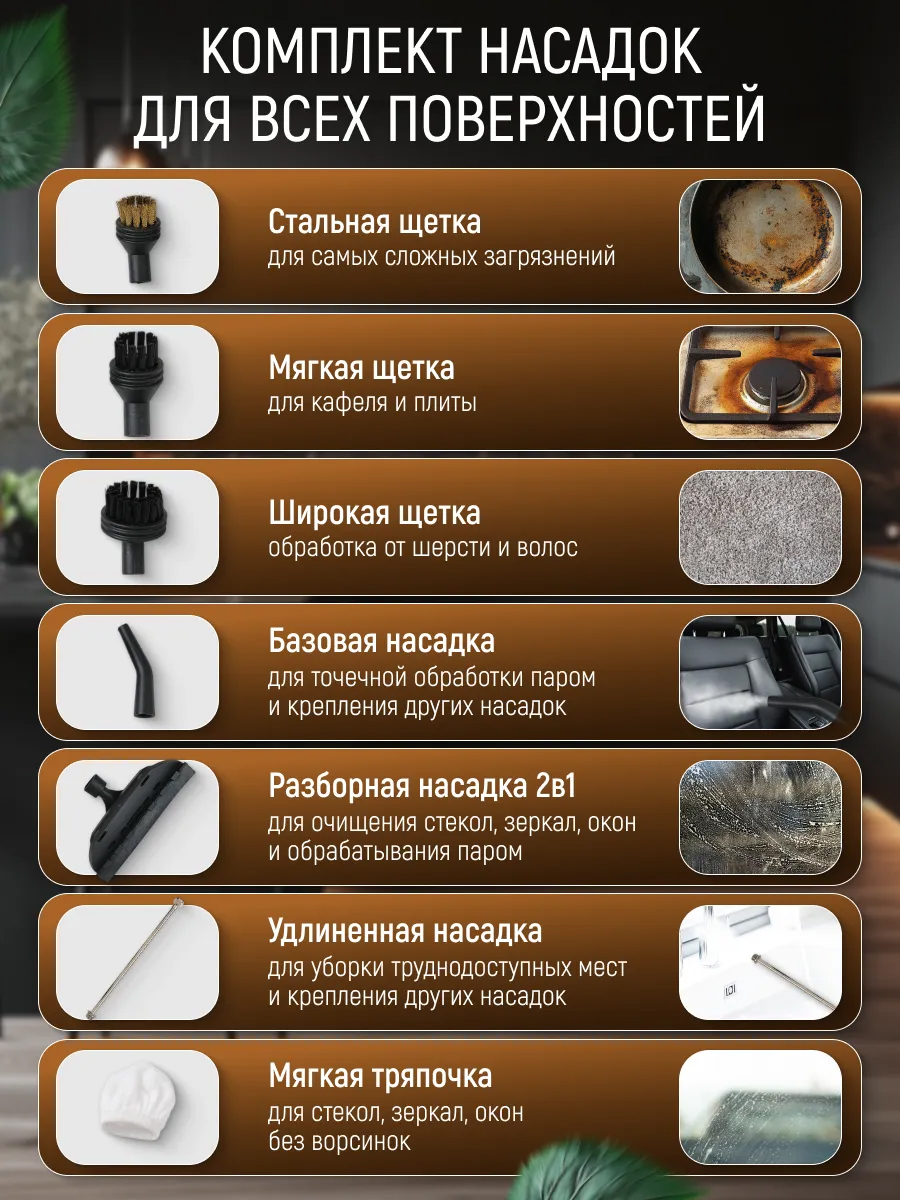 Этот мощный пароочиститель для уборки оснащен удобной системой нагрева. Она мгновенно приготавливает пар, который проникает даже в трудноудаляемые загрязнения. Ручной пароочиститель дополнит ваш арсенал чистящих средств, позволяя охватить каждый уголок вашего помещения с легкостью.
